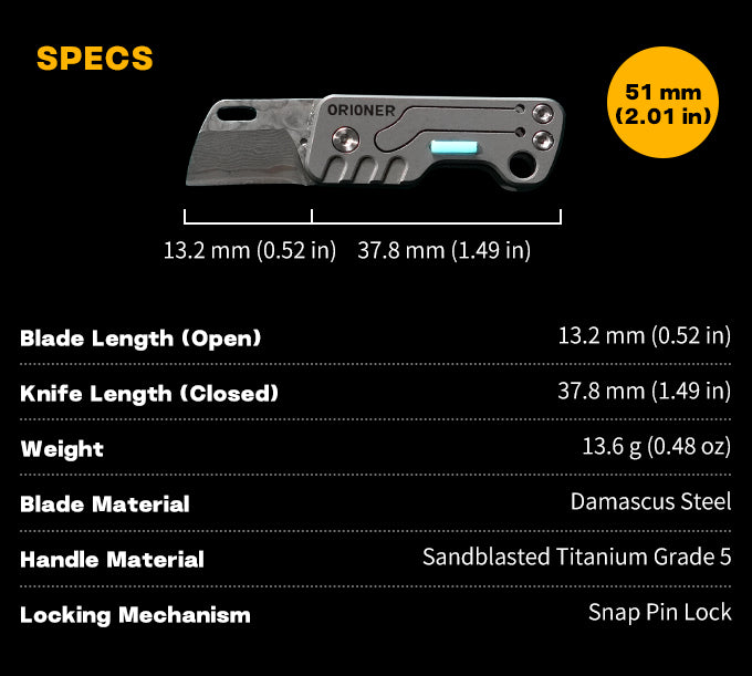 Crafted for real EDC: Damascus blade, titanium frame, tritium slots, bottle opener & keychain hole—tough, compact, built to perform.